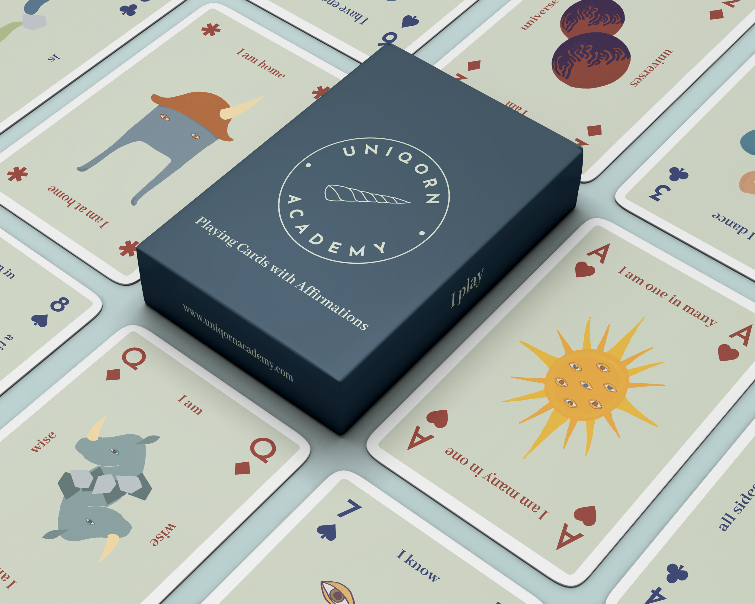 Uniqorn Academy playing card deckillustrations and design for wellbeing brand, 2021